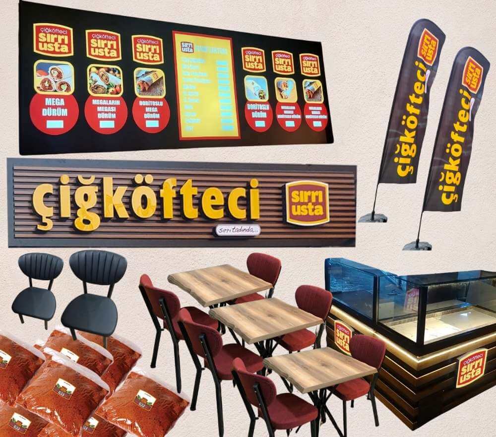 Çiğköfteci Sırrı Usta’dan bayilik paketi satın aldığınızda dükkan için gerekli her türlü malzeme gelecektir.